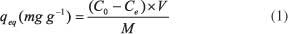 由各溶液吸附的亞甲基藍(lán)的量由式1計(jì)算: