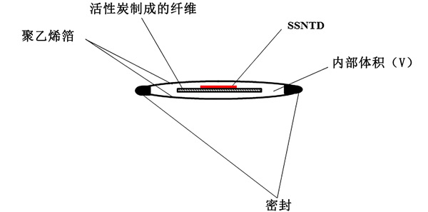帶溫度補償?shù)幕钚蕴刻綔y器模塊設計如圖1所示。內(nèi)部傳感器使用活性炭吸附器和固體核徑跡探測器(SSNTD)。在本實驗中,使用了三種活性炭制成的纖維。活性炭用作氡收集器/散熱器,而SSNTD則檢測輻射量。補償模塊的壁由低密度聚乙烯或高密度聚乙烯箔制成。根據(jù)造型選擇箔的厚度和表面積,以達到合適的溫度補償。。當探測器在探測器模塊外時,校準系數(shù)為CF0。然而,當探測器放置在其校準因子內(nèi)時,平衡時將為CF =CF0.ρ,其中ρ是“穿透率”,即模塊體積內(nèi)空氣中的平衡時氡濃度與濃度的比值在它周圍的空氣中。CF0與吸附容量k成正比并且遵循與k相同的溫度趨勢,而CF與kρ成正比。正如在其他地方所指出的,穿透體積中壁的部分ρ隨著溫度的升高而增加,因此溫度的趨勢與k的趨勢相反。選擇氣體擴散通過的壁材、厚度、壁表面積和“補償模塊”的體積,以使kρ的溫度變化在應用的溫度區(qū)間內(nèi)盡可能小。