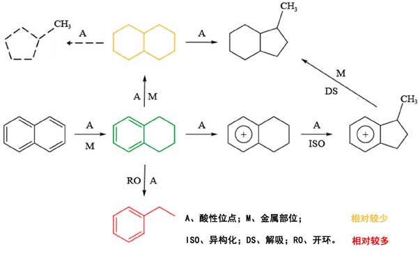 圖4:萘在改性活性炭催化劑上的反應(yīng)路徑。