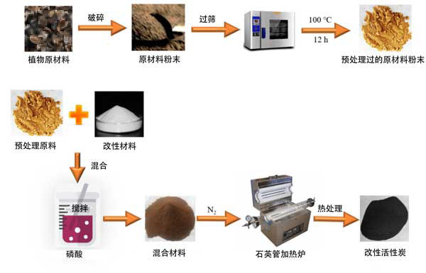 稀土元素具有獨特的物理和化學(xué)特性,它們廣泛應(yīng)用于電化學(xué)傳感器、超級電容器、生物醫(yī)學(xué)納米復(fù)合材料、發(fā)光材料、超導(dǎo)材料和永磁材料等。鑭(La)是一種重要的稀土元素,在戰(zhàn)略產(chǎn)業(yè)中占有舉足輕重的地位。它的主要應(yīng)用包括超導(dǎo)體、陶瓷、電化學(xué)、催化劑、磁性、發(fā)光和添加劑材料。從冶金溶液或廢水中回收La3+具有重要的意義。然而La3+的回收率通常小于1%,且回收方法不環(huán)保或不方便用戶。因此,發(fā)明了一種改性活性炭吸附劑。
