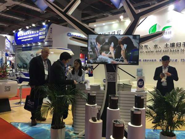 在為期三天的展會中,來自各個(gè)國家、各個(gè)行業(yè)的專家在韓研活性炭的展館交流探討活性炭相關(guān)技術(shù)問題。