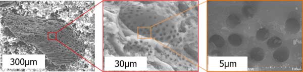 為實(shí)驗(yàn)準(zhǔn)備了兩種類型的樣品,無裂縫標(biāo)本和帶裂縫的標(biāo)本。樣品的尺寸為20×20×4mm。使用丙烯酸板形成裂縫。使用椰殼制備的載銀活性炭(活性炭+0.1%AgCl),并使用氯化銀實(shí)現(xiàn)銀的浸漬。盡管粉末粒度具有寬的尺寸分布,但250-500μm的顆粒占約90%的顆粒。圖2顯示了活性炭表面結(jié)構(gòu)的掃描電子顯微鏡(SEM)圖像:發(fā)現(xiàn)其表面是多孔的,并且在大孔內(nèi)部觀察到幾個(gè)中孔。在實(shí)驗(yàn)期間使用恒電位儀在兩種條件下測(cè)量樣品的開路電位:與活性炭接觸和不接觸活性炭。在實(shí)驗(yàn)之后,使用光學(xué)顯微鏡觀察樣品表面。測(cè)量在開路條件下進(jìn)行近40小時(shí)(在中性溶液中)和24小時(shí)(在堿性溶液中)。